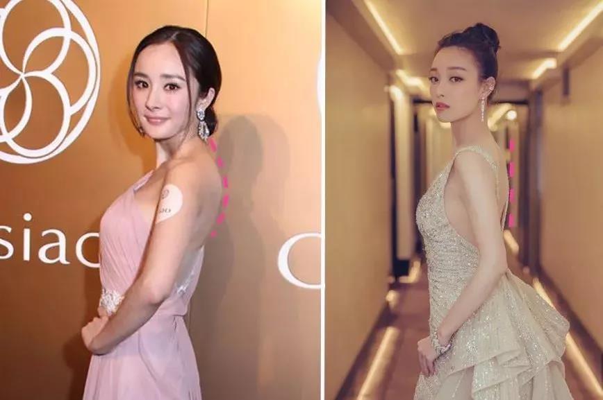 而楊冪,則因為頭部前傾